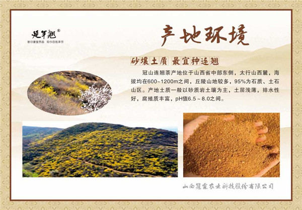 冠山盛產連翹,每到春暖花開之時,連翹花開遍滿山,其香散發,吸引了眾多游客,適逢較好的采茶時段,當地百姓便上山采茶,經過十一道精細加工制出其香的連翹茶。